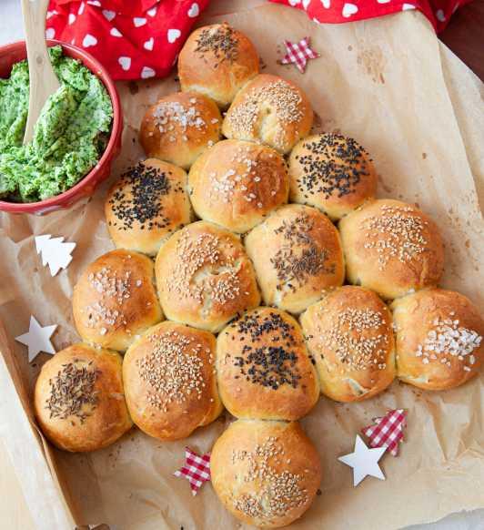 Brašno sipajte u veću posudu, napravite malo udubljenje u sredini i tu sipajte kvasac. Dodajte kašiku šećera, so i ulje, a potom lagano dodajte mleko. Umesite glatko testo, pokrijte krpom i pustite da odstoji sat vremena. Kad se testo digne, prebacite ga na pobrašnjenu površinu i podelite na 15 jednakih kuglica. Svaku kuglicu napunite sirom i lagano uobličite dlanovima. Pripazite da punjenje ne viri jer će tokom pečenja iscuriti i zalepiti se. Kuglice složite u oblik jelke. Na dno pleha prekrivenog pek papirom prvo posložite pet kuglica jednu uz drugu. U svaki sledeći red stavite kuglicu testa manje. Pokrijte krpom i ostavite da se diže još 20 minuta. Pre pečenja premažite žumancetom, posolite i po želji pospite susamom. Pecite u rerni zagrejanoj na 180°C 25–30 minuta. Kad vaša jelka poprimi zlatnosmeđu boju, izvadite ga i pričekajte 10-ak minuta pre posluživanja.