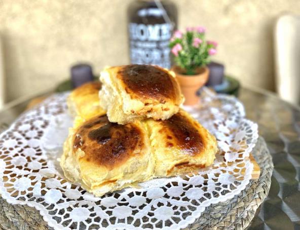 Umesiti glatko testo, podeliti na 8 jufkica. Svaku jufkicu napuniti sirom, pa zagladiti testo. Ređati u kalup. Preko jufkica preliti umućeno žumance, jogurt i krem sir. Peći na 180 stepeni 25 do 30 minuta.