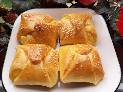Rastopite kvasac u malo vode, pa dodajte kašičicu šećera. Kad nadođe dodajte mleko, brašno i so i zamesite mekše testo. Pokrijte i ostavite da naraste, pa razvijte na cm debljine i secite na kvadrate. Sir izdrobite, pa dodajte jaje i promešajte. U svaki kvadrat na sredinu stavite sir. Spojite uglove ka sredini. Ređajte u podmazan pleh i pokrijte krpom, pa kad narastu premažite žumancetom. Pecite na 190°C oko 30-35 min.