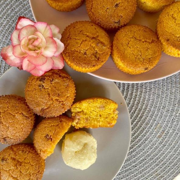 Ispržite slaninicu bez ulja. Umutite jaja, pa dodajte vodu i ulje i promešajte. Zatim ubacite sve suve sastojke, kao i kajmak i slaninicu. Sjedinite. Smesu sipajte u kalup za projice. Pecite na 200°C 25-30 minuta.
