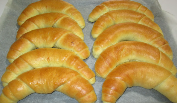 Pomešajte mleko, šećer i suvi kvasac i ostaviti da odstoji 10 minuta. Redosedom dodajte ostale sastojke i zamesite testo. Ostavite da odstoji 30 minuta. Testo iskidajte na 10 komadića i napravite loptice. Što tanje razvucite lopticu i urolajte je. Ostavite da odstoje 30 minuta i premažite vodom. Pecite u prethodno zagrejanoj rerni 20 minuta na 200°C.