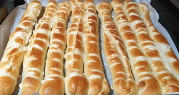 Svaku lopticu prstima malo razvucite, pa urolajte. Dobijeni štapić rolajte rukama, kako biste ga rastanjili (postupak pogledajte u VIDEU). Poređajte u pleh obložen pek papirom. Premažite ih sa vodom i pecite u prethodno zagrejanoj rerni na 200°C 10 minuta.
