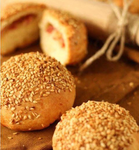 Podelite testo na manje jufkice. Razvucite ih ručno i na sredinu stavite komadiće kulena i kačkavalja. Preklopite testo i oblikujte pogačice. Susam propržite da dobije zlatnu boju. Gornji deo pogačice premažite vodim pa umočite u činiju sa susamom da se zalepi. Pecite ih u plehu na 200c oko pola sata.