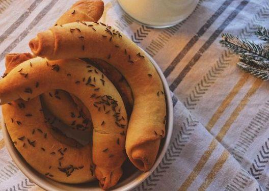 4. Kada ste sve kiflice formirali, premažite ih mešavinom ulja i mleka, a zatim preko pospite kim.