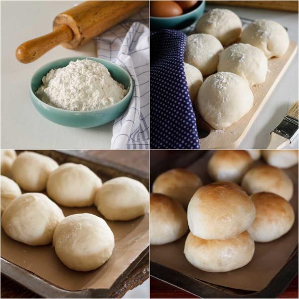 1. Izmešati brašno i so u činiji za mešenje, pa u sredini napraviti udubljenje. Razmutiti kvasac, šećer i kašiku mlake vode, sipati u udubljenje. Posuti kvasac sa malo brašna, pokriti posudu i ostaviti na toplom mestu oko 60 min.
