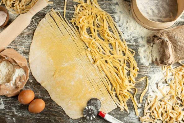 U brašno dodajte jaje, so. Umesite glatko testo i umotajte u providnu foliju, pa ostavite u frižideru da odmori pola sata. Razvaljajte testo na debljinu od 2-3 mm, pa izrežite krpice (male kvadrate) ili rezanca. Rastresite rukama i ostavite na stolnjaku da se osuše.