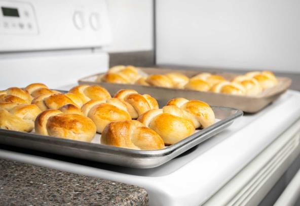 Kada su zemičke narasle, premažite ih mešavinom jaja i ulja, pa stavite da se peku u zagrejanu rernu na 200°C dok ne porumene i dok čačkalica ne izadje suva iz njih. Ako su porumenele, a nisu još pečene, prekrijte ih papirom za pečenje ili alufolijom, pa pecite još malo.