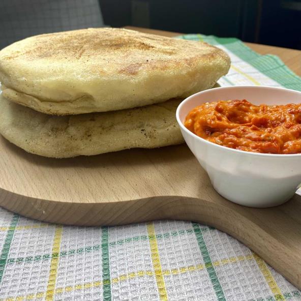 Sastojke pomešati i umesiti mekano testo. Ostaviti da odstoji. Zatim podeliti na dva dela i razvući željeni oblik. Tiganj podmazati margarinom i posuti grizom. Hleb peći sa obe strane na umerenoj temperaturi u poklopljenom tiganju. Prijatno!