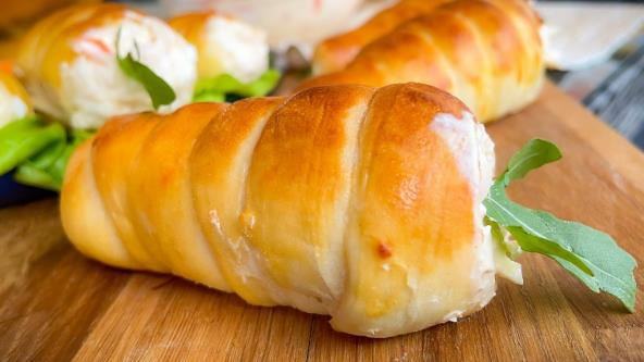 Pecite u zgrejanoj rerni dok ne porumene, oko 15-20 minuta. Nafilovati ih sa filom. Ako ste ih pravili sa viršlama, možete da ih ostavate tako. Umesto ovog testa možete da koristitie i lisnato testo i ubrzate način prirpeme.