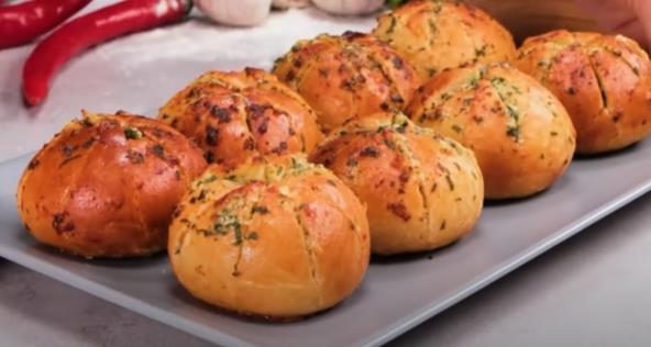 U rastopljen maslac dodajte sitno seckan beli luk, peršun i parmezan pa sve lepo umešajte. Umočite svaku lepinju u ovu mešavinu držeći je za donji deo kako bi se gornji rascvetao jer smo ga zasekli. Vratite ponovo u rernu na 10 minuta. Služite toplo.