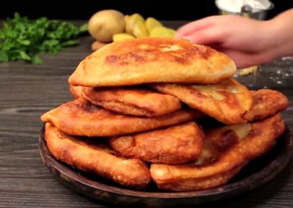 Kuvani krompir posolite i pobiberite, dodajte puter i izgnječite. Dodajte seckanu mirođiju i propreženi seckani crni luk, pa sjedinite. Sipajte smesu na testo i zatvorite kao pancerotu. Još malo oklagijom razvucite i pržite na malo ulja.