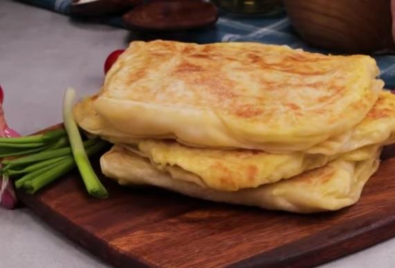 Razvucite prstima na što tanje. Sipajte preko rendani kačkavalj, pa prekolopite prvo po dužini, pa po širini (kao pismo). Kada preklopite po dužini stavite još malo kačkavalja, pa onda po širini preklopite. Treba da dobijte oblik kvadrata. Zatim uzmite drugo testo, razvucite rukama što tanje, pa pospite kačkavaljem. Kvadrat od testa koji ste napravili stavite na sredinu i preklopite kao prvo testo. Pecite u suvom i poklopljenom tiganju sa obe strane.