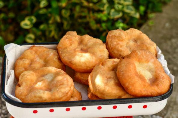 Ruke nakvasiti u vodi, od naraslog testa kidati parčiće (veličine male jabuke), razvući u željene oblike, staviti na zagrejano ulje i s obe strane pržiti 3-4 min.