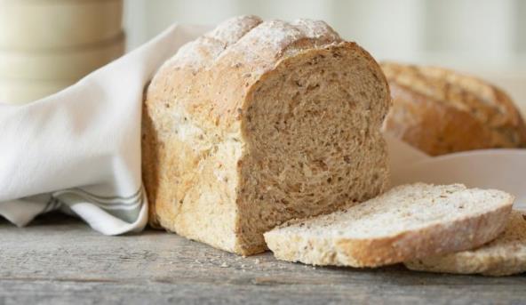 2. Testo promesiti na pobrašnjenoj radnoj površini i oblikovati veknu. Staviti u četvrtasti duboki pleh (zapremine 1,5 l ), pokriti i ostaviti još 15 minuta da naraste. Zagejati rernu na 200 stepeni i peéi hleb 35 – 45 minuta. Kad se hleb prohladi, izvaditi ga iz pleha.