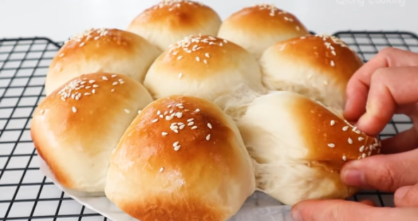 U mleko dodajte šećer i kvasac i dobro promešajte. Zatim sipajte brašno i so i špatulom sjedinite da dobijete testo. Pokrijte i ostavite 20 minuta. Zatim dodajte istopljeni maslaca i rukama dobro sjedinite. Pospite sa malo brašna, poklopite i ostavite sat vremena. Razvucite testo i isecite na 8 delova. Oblikujte loptice i ređajte u kalup prečnika 23 cm obložen pek papirom. Pokrijte i ostavite u frižideru najmanje 10 sati, a može i preko noći. Izvadite iz frižidera i ostavite na toplom još sat vremena. Ako su se na testu pojavili mehurići probušite ih čačkalicom. Ostavite na toplom još sat vremena, pa ih premažite umućenim jajetom ili mlekom i pospite susamom. Pecite na 180°C oko 20-25 minuta.