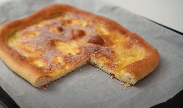 Jedno celo jaje pomešajte sa toplim mlekom, pa dodajte kvasac i sve lepo promešajte da se sjedini. Dodajte brašno i malo soli, pa zamesite testo u koje ćete potom dodati puter. Sve dobro umesite da dobijete glatko testo. Pokrijte i ostavite da odstoji dok se ne udvostruči. Premesite još jednom i oblikujte lepinju. Razvucite oklagijom na otprilike pola santimetra debljine. Stavite u pleh obložen pek papirom, a odozgo poređajte kockice slanog putera. Pecite u rerni na 180 C nekih 15-ak minuta dok ne dobije zlatastu koricu.