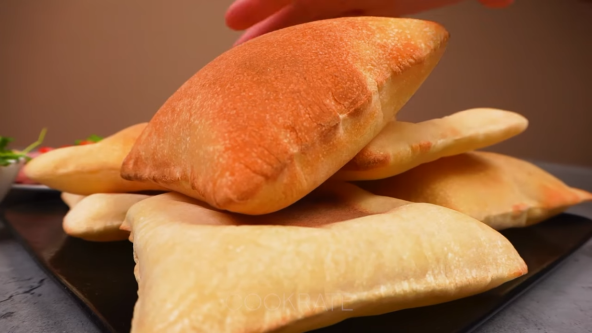 U toploj vodi pomešajte šećer i kvasac, pokrijte i ostavite 15 minuta. Sipajte kvasac u brašno, dodajte so i ulje, pa zamesite testo. Pokrijte i ostavite na toplom 3 sata da odmori. Kratko premesite, pa podelite na osam delova i oblikujte loptice. Svaku rastanjite oklagijom, dobićete nepravilan oblik, a onda presavijte prvo sa obe strane po dužini, a zatim i po širini, da se oblikujte kvadrat. Pokrijte i ostavite da odmori 15 minuta. Pospite brašnom, pa rastanjite na tanak kvadrad, a onda stavite na pleh. Pecite u rerni na 200°C 5 minuta.