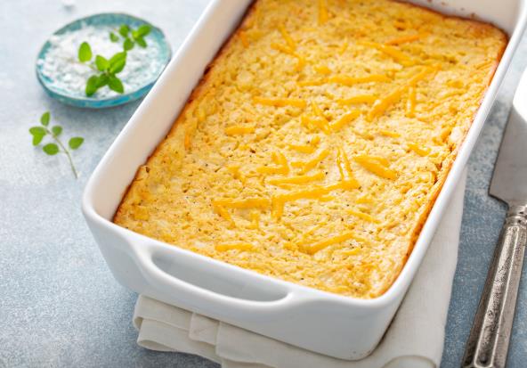 Prebacite u podmazanu vatrostalnu posudu. Pospite preostalim sirom. Pecite, nepokriveno, dok čačkalica umetnuta u sredinu ne izađe čista, 35-40 minuta.