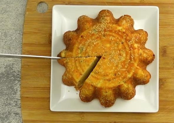 Kuvani pasulj procedite kroz cediljku pa sipajte u činiju. Dodajte jaja i maslinovo ulje i dobro izmešajte štapnim mikserom. Dodajte jogurt, so, ljutu crvenu papriku i feta sir i dobro promešajte. Dodajte peršun, kukuruzno brašno i prašak za pecivo i ponovo promešajte. Pleh premazati puterom, posuti preko susam i sipati smesu. Pecite 40 minuta na 170°C. Kada je gotovo okrenite naopačke da susam bude na vrhu.