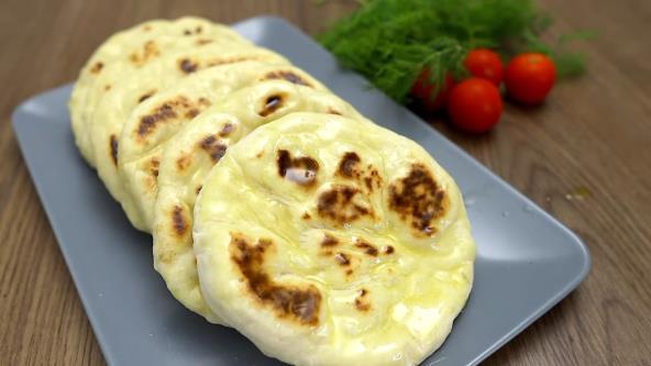 U jogurt dodajte so i vodu, pa promešajte. Zatim sipajte prosejano brašno sa praškom za pecivo i umesite testo. Podelite ga na 6 delova i oblikujte loptice. Pecite u tiganju na malo ulja sa obe strane po 5 minuta. Premažite istopljenim puterom.
