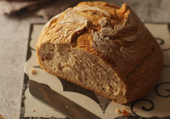 9. Zarežite vrh (opciono): Pre pečenja, možete napraviti nekoliko plitkih rezova na vrhu vekne da biste dobili dekorativne rezove, ali i da biste kontrolisali širenje hleba.