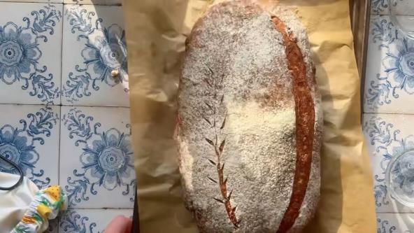 Kada je hleb nadošao, lagano ga pobrašnite i zarežite oštrim nožem ili žiletom. Stavite veknu na srednju rešetku, a u vrelu tepsiju ispod brzo sipajte oko 600 ml vrele vode – para će stvoriti hrskavu koru. Brzo zatvorite vrata rerne. Pecite 25 minuta sa parom, zatim pažljivo izvadite donju tepsiju sa vodom i pecite još 15–20 minuta dok ne dobije zlatno-smeđu boju. Izvadite hleb iz rerne i ostavite ga da se ohladi najmanje 30 minuta pre sečenja, kako se unutrašnjost ne bi zbila.