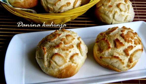 2. Kad testo nadođe, izraditi ga i podeliti na 10 delova i od svakog dela oblikovati lopticu, staviti na pleh obložen papirom. Ostaviti da odstoje 15 minuta, pa premazati premazom.