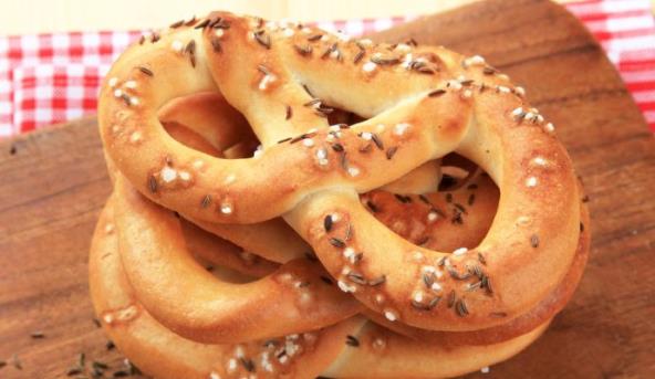 3. Ostaviti ga na toplom mestu da udvostruči svoju zapreminu. Uzimati po komad testa i praviti perece. Pre prečenja ostaviti ih u plehu pola sata da narastu, posuti susamom (i kimom, po želji) i peći dok lepo ne porumene.