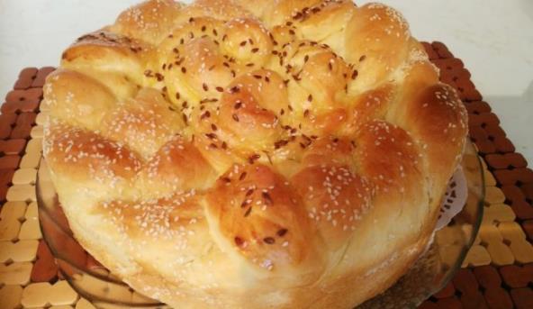 5. Premažite pogaču jajetom, a možete je posuti susamom. Ostaviti da naraste oko 15 minuta i pecite na 180 stepeni oko 40 minuta.