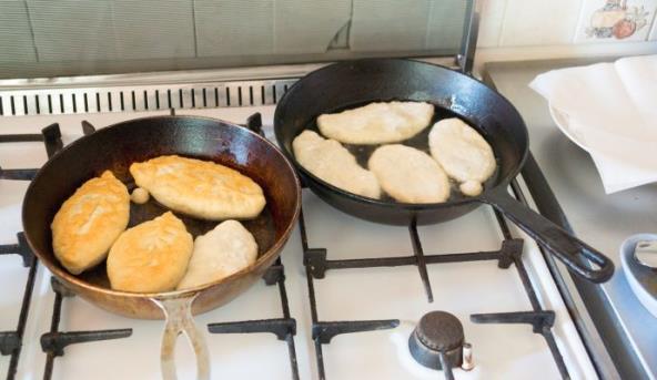 3. Ruke nakvasiti u vodi, od naraslog testa kidati parčiće (veličine male jabuke), razvući u željene oblike, staviti na zagrejano ulje i s obe strane pržiti 3-4 min.