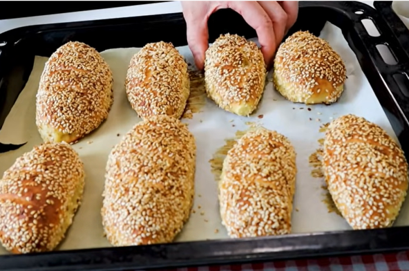 Otopite med sa vodom, pa umačite kifle u tu smesu, a zatim u preprženi susam. Ređajte u pleh obložen pek papirom, na nekoliko mesta zasecite nožem i pecite na 180°C nekih 20 minuta.