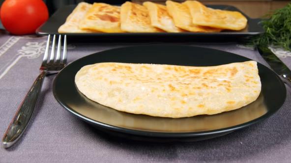 Sir izrendajte, a u posudi pomešajte brašno, so i 50 g čedar sira. Dodajte ključalu vodu. Umesite testo, pa oblikujte valjak i isecite na 8 delova. Razvucite testo, pa na sredinu sipajte sir i preklopite (kao kalconu). Pržite Sa obe strane po 5-7 minuta.