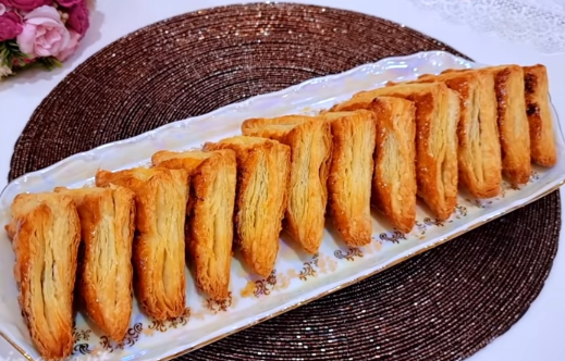 Pomešajte puter sobne temperature, brašno, vodu i so i umesite testo. Pokrijte i ostavite 10 minuta. Razvucite testo u obliku pravouganika. Treba da bude tanko, pa premažite sa puterom (125 g). Preklopite po dužini, prvo sa jedne strane do pola, pa sa druge strane preko svega. Razvucite opet oklagijom i zasecite na 2 dela. Treba da dobijete 3 dela kvadrata. Preklopite jedan kvadrat na sredinu, a zatim i drugi. Treba da dobijete jedan kvadrat. Ostavite da odmori 10 minuta. Ponovite još jednom ceo postupak, razvučete testo, zasečete na 2 mesta kako biste dobili 3 kvadrata, pa preklopite. Pokrijte i ostavite još 10 minuta. Zatim ponovo razvucite u dužinu, pa presecite na pola po dužini, a zatim po širini secite kvadrate. Stavite malo fila po želji i preklopite. Možete da napravite 3 reza na testu da kad preklopite lepše izgleda. Stavite u pleh obložen pek papirom i premažite umućenim žumancetom. Pecite na 210°C nekih 20 minuta.