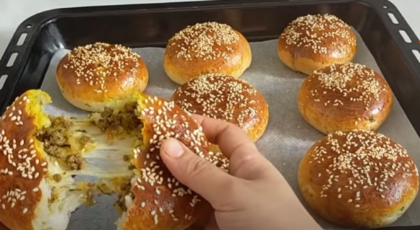 Domaće vruće lepinje svi volimo za doručak, još ako su punjene onda je to prava gozba. Napravite fil od mlevenog mesa, luka i paradajza i punite ove lepinjice. Sve zapecite i uživajte.