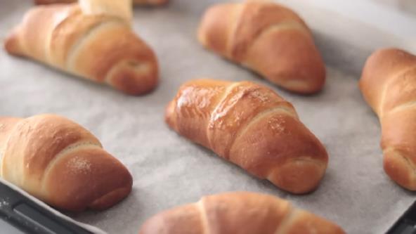 U puter sobne temperature dodajte rendani beli luk, so i peršun. Dobro sjedinite, pa sipajte u kesu za zamrzivač na kojoj ste isekli rupu. Na pleh stavite pek papir, pa iscedite iz kese valjak od putera dužine 14 cm (8 komada). Pokrijte providnom folijom i ostavite u frižideru da se stegne. U posudi pomešajte brašno, šećer, so i kvasac, pa dodajte vodu. Umesite testo, a onda dodajte i puter sobne temeprature i mesite dok ne dobijete mekano testo. Pokrijte i ostavite da odmori sat vremena. Nakon toga na malo pobrašnjenoj površini premesite testo i opet pokrijte i ostavite 10-15 minuta. Razvucite krug prečnika 22 cm i isecite 8 trouglova. Svaki trougao razvucite, pa stavite parče putera i urolajte. Poređajte na pleh obložen pek papirom, pa pokrijte i ostavite da odmore 50 minuta. Premažite vodom i pospite sa malo soli. Pecite u zagrejanoj rerni na 200°C oko 10-13 minuta.