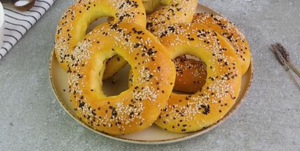 Za pripremu mesne mešavine pomešajte mleveno meso sa seckanim lukom, solju, biberom i kimom. Nakon isteka vremena podeliti testo na 6 jednakih delova i formirati loptice. Svaku lopticu razvaljati i prstom napraviti rupu na sredini. Meso poređati po testu formirajući prsten. Zatvorite svaki prsten pritiskom prstima. Prebacite kolutove u pleh obložen papirom za pečenje i svaki kolut namažite jajima. Pospite ih susamom i pecite u rerni zagrejanoj na 180°C 30 minuta.