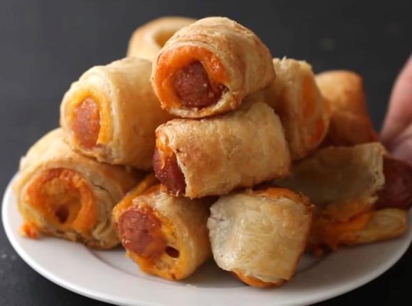 Lisnato testo razvucite, pa isecite na manje kvadrate. Preko stavite list sira, pa viršlu i urolajte. Presite na 3 dela, pa poređajte na pleh obložen pek papirom. Pecite na 220°C oko 15 minuta i služite.