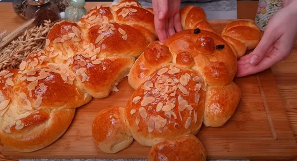 Ukrasite i pletenicu i zeca listićima badema. Pecite u prethodno zagrejanoj rerni na 180 stepeni 35-40 minuta. Nakon toga pustite da se prohladi i servirajte. Možda ćete želeti da napravite i pecivo sa lukom i origanom.