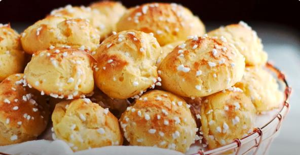 Kako biste napravili ovo pecivo, prvo zagrejte rernu na 200°C. Obložite pleh papirom za pečenje. Zagrejte vodu, šećer, so i puter u srednjoj šerpi dok ne proključaju. Sklonite sa vatre i dodajte brašno odjednom, snažno mešajući varjačom, dok testo ne postane glatko i ne počne da se odvaja od ivica šerpe.