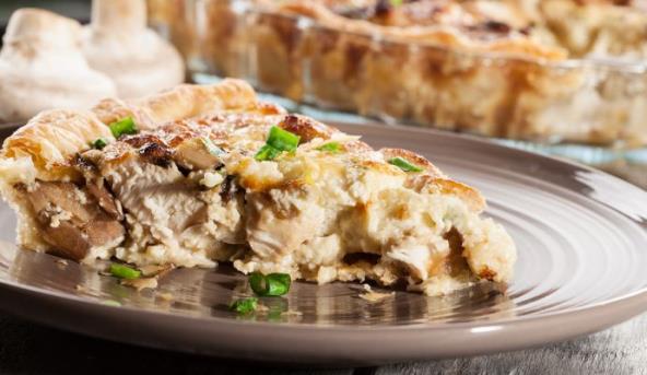 4. Za fil je potrebno prvo da istopite puter na srednje jakoj temperaturi, zatim dodajte luk, šargarepu, beli luk i celer, i dinstajte dok povrće ne postane mekano i staklasto. Zatim dodajte sve začine, brašno, pileći bujon, kao i mileram ili pavlaku. Mešajte sve vreme kako ne bi ostale grudvice od brašna, i ostavite fil da krčka narednih 10 minuta na blagoj temperaturi, sve dok smesa ne postane zgusnuta.