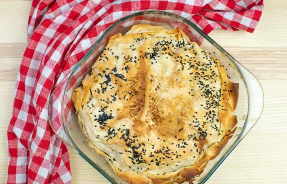 Pecite u zagrejanoj rerni oko 25 minuta. Pečenu gibanicu poprskajte vodom, pokrijte salvetom i ostavite da ce prohladi.