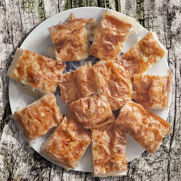 U kravlji sir staviti kiselu pavlaku, jaja, sol, ulje, mineralnu vodu. Zatim u toj fazi pripreme gotove kore za pite samo iscepkajte rukama preko svega.