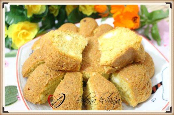 Jaja umutiti, dodati brašno sa praškom za pecivo, so, ulje, vodu i sir na kockice i sve izmešati..