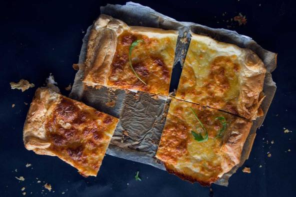 U jednu posudu pomešate pavlaku, kačkavalj i šunku. Zatim u pleh poređate red kora koje premažete kečapom, zatim ide drugi red kora koje premažete smesom sa pavlakom, kačkavaljem i šunkom, pa treći sloj koji premažete jajima. I tako sve dok ne utrošite fil. Peći dok se ne porumeni.