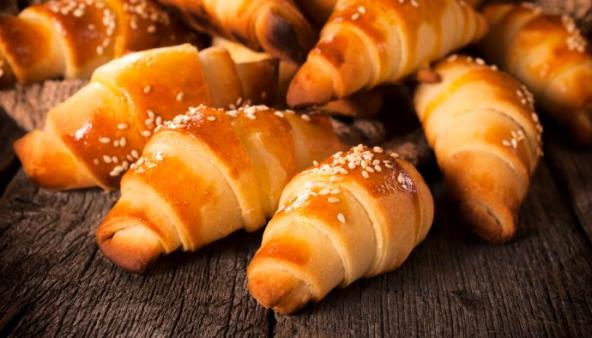 3. Urolajte kifle uvijajući testo prema vrhu, odnosno sredini kruga i ređajte ih u pleh. Kiflice premažite umućenim jajetom i pospite susamom. Pecite u dobro zagrejanoj rerni oko 30 minuta.