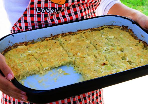 Fina i lagana izlivena pita sa tikvicama, krompirom i mladim sirom.