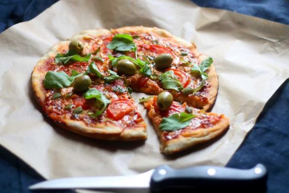 Testo premesiti, pa razvaljati za picu i staviti preko papira za pečenje.