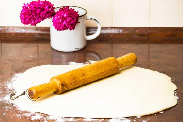 Zatim ih izvadite na stolnjak, jer se tako neće lepiti. Prvo počnite da razvlačite koru od sredine obema rukama. Ne gurajte cele vrhove prstiju unutra nego radite lagano jagodicama.