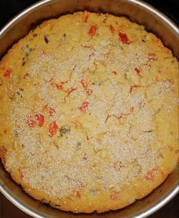 Priprema: U većoj posudi pomešajte projinosabelim ili ražanim brašnom. Zatim dodajte vodu, ulje i prašak za pecivo pa sjedinite smesu. Papriku, krastavčiće i praziluk sitno iseckajte i to dodajte u testo. Mešajte dok smesa ne postane glatka, a po potrebi dodajte vodu ili brašno. Rernu zagrejte na 250°C. Pleh pouljite ili stavite pek papir, pa sipajte testo.Pecite 10 minuta na 250°C, pa pecite još 20 minuta na 180°C.
