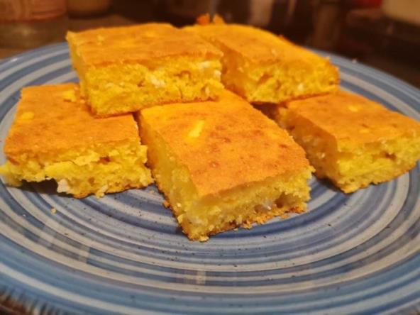 Griz, maslinovo ulje, jaja i prašak za pecivo pomešajte. Dodajte malo kisele vode ako je smesa previše gusta. Tikvicu izrendajte, a sir izdrobite, pa dodajte u smesu i promešajte još jednom. Izlijte u pleh i pecite nekih 40 minuta na 200°C.